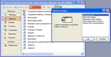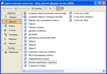 В результате выполнения поставленных задач, мной была достигнута цель, конечным результатом которой являлась разработка базы данных «туристическое агентство», которая включает в себя: 6 таблиц, 17 запросов, 9 форм, 6 отчетов и 3 макроса. Создаваемые запросы, формы, отчеты и макросы позволяют быстро обновлять данные, получать ответы на вопросы, осуществлять поиск нужных данных, анализировать данные, печатать отчеты и т.д. Она позволяет полностью автоматизировать, и тем самым облегчить работу с данными пользователю.