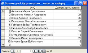 » показано ФИО и сколько дней будут отдыхать тот или иной клиент. С помощью этой формы можно быстро узнать, сколько будет отдыхать (см. рис 39).