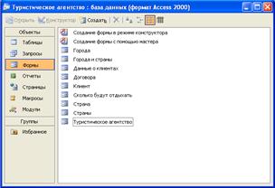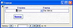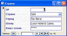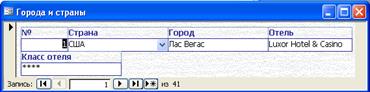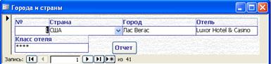 » можно выбрать страну, город и отель. Эта форма ссылается на таблицу «Город» (см. рис 41).