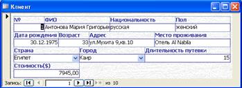 » содержатся все данные о клиентах. С помощью этой формы туристический агент знает всё о своих клиентах, и он может с ними связаться, если у него будут какие-то вопросы (см. рис 36).