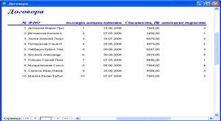Режим предварительного просмотра отчета позволяет увидеть отчет таким, как он будет выглядеть в напечатанном виде. 6 отчетов: «Города и страны», «Данные о клиентах», «Договора», «Отчет 1», «Отчет 2», «Отчет 3».