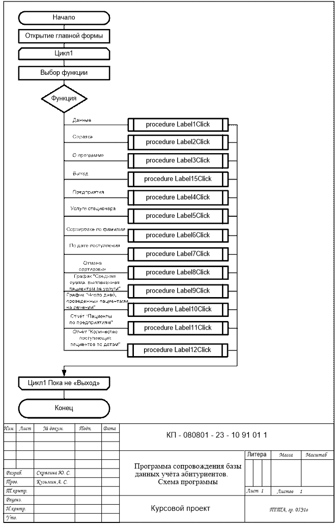 Интерфейс приложения представляет собой форму с расположенными на ней интерфейсными элементами управления для более удобного ввода, редактирования и вывода информации и набор запросов для отбора нужных данных из нескольких таблиц.