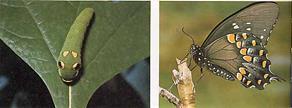 Как видно из представленных на этих страницах снимков, обнаружить какое-либо сходство между неуклюжими гусеницами и яркими взрослыми бабочками совершенно невозможно. Покрытая шипами пятнистая личинка (прямо внизу) не дает никакого намека на элегантную полосатую нимфалиду, которой она станет во взрослом возрасте.