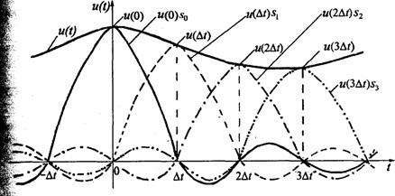 построены четыре первых члена ряда, соответствующие отсчетам сигнала в моменты времени 0, , 2 и 3 , взятым в соответствии с теоремой Котельникова. При суммировании этих членов ряда в любые отсчетные моменты времени kDt, непрерывный сигнал абсолютно точно аппроксимируется независимо от числа выбранных отсчетов. В интервале же между любыми отсчетами сигнал u(t) аппроксимируется тем точнее, чем больше суммируется членов ряда Котельникова (2). Оценим возможность применения теоремы Котельникова к импульсному сигналу u(t) конечной длительности Tх