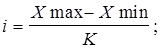 где X max , X min – наибольшее и наименьшее значение группировочного признака, k – количество интервалов