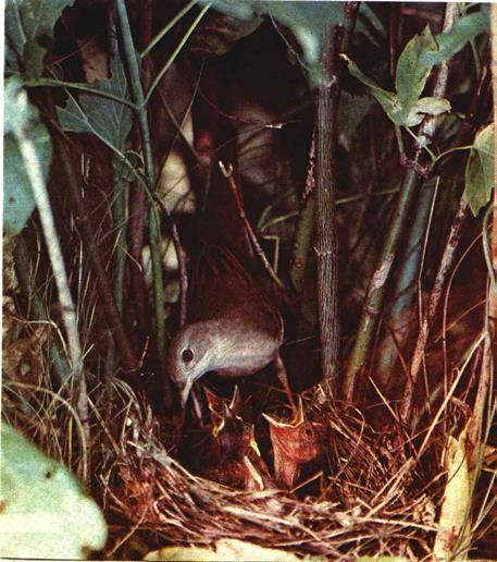 Садовая славка и ее потомство.