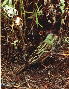 Садовая овсянка—обычный обитатель многих сельскохозяйственных угодий.