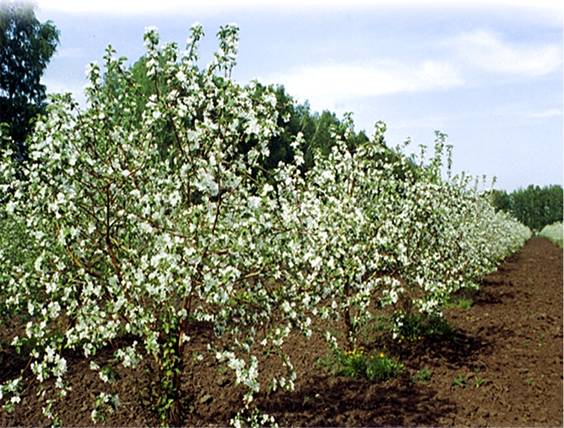 РАЗРАБОТКА НОВЫХ И УСОВЕРШЕНСТВОВАНИЕ СУЩЕСТВУЮЩИХ ТЕХНОЛОГИЙ ПРОИЗВОДСТВА ЯБЛОК. На основе результатов эколого-физиологических и экономических исследований института, обобщения результатов исследований и передового зарубежного опыта применительно к конкретным эколого-экономическим условиям средней зоны РФ определены и научно обоснованы основные необходимые технологические параметры перспективных садов для средней зоны РФ, отвечающих современным требованиям хозяйствования в условиях рыночной экономики: