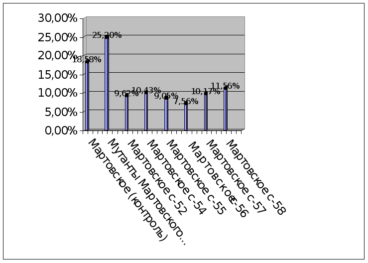 Наиболее засухоустойчивой из всех мутантных и гибридных форм оказалась форма Мартовское с-56.