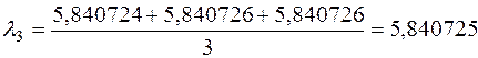 Данное уравнение идентично уравнению, полученному при помощи метода Крылова. Нет смысла заново его решать. Воспользуемся уже вычисленными корнями (их средним значением).