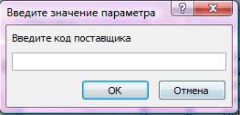 Выполняем запрос. Появится окно с предложением ввести наименование поставщика.