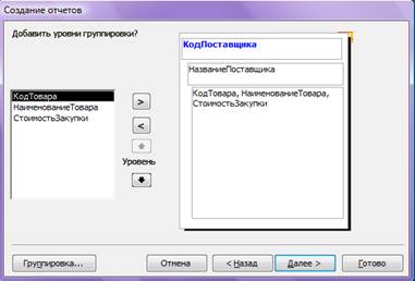 Добавляем уровни группировки (см. рис. 25), нажимаем «Далее»