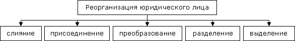 Реорганизация юридического лица проводится в форме слияния, присоединения, разделения, выделения или преобразования.