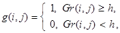 Будем считать, что для каждого элемента изображения (ЭИ) с координатами имеется оценка модуля градиента , которая, например, может быть получена с помощью оператора Собеля. Контуры изображения представляют собой кривые на изображении, в точках которых модуль градиента имеет большее значение, либо не определен в силу того, что частная производная вдоль направления x либо y терпит разрывы. Поскольку мы имеем лишь оценку градиента, то можно предположить, что точка принадлежит контуру, если значение функции в этой точке достаточно большое. С учетом этого можно ввести в рассмотрение порог h и считать, что любая точка , для которой h не принадлежит контуру. Это позволяет ввести в рассмотрение градиентное изображение