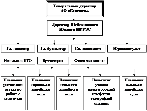 Объектом исследования отчета по практике является акционерное общество “Белсвязь” филиал Шебекинский Южный МРУЭС. Это одно из старейших предприятий города Шебекино. Шебекинский филиал является обособленным подразделением юридического лица - АО «Белсвязь», место нахождения филиала г. Шебекино Белгородской области, площадь Ленина д. 3.