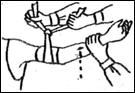 Рис. 2. Тимчасова зупинка кровотечі згинанням кінцівки в колінному та тазостегновому суглобах.