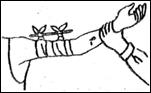 Рис.1. Тимчасова зупинка сильної кровотечі накладанням закрутки.