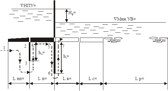 3.6. Расчет подземного контура плотины и боковой фильтрации.....................................