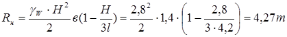 Гидростатическое давление на нижний щит (Т) при расчетном напоре Н (м).