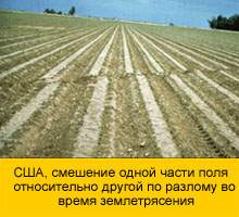 Вертикальные подвижки приводят к резкому опусканию или поднятию пород. Обычно смещение составляет лишь несколько сантиметров, но энергия выделяемая при движениях горных масс весом в миллиарды тонн, даже на малое расстояние, огромна! На дневной поверхности образуются тектонические трещины. По их бортам происходят смещения относительно друг друга обширных участков земной поверхности, перенося вместе с собой и находящиеся на их поля, сооружения и многое другое. Эти перемещения можно увидеть невооруженным глазом, и тогда связь землетрясения с тектоническим разрывом в недрах земли очевидна.