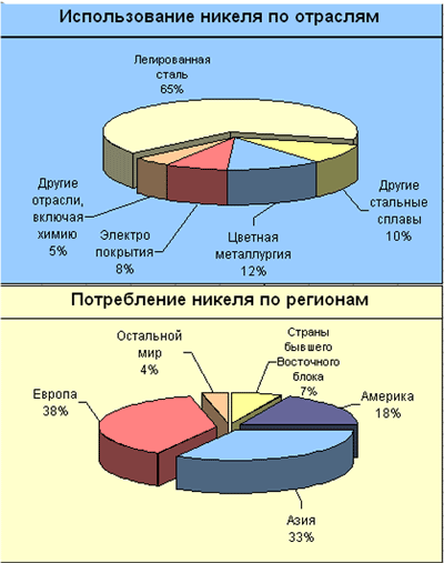около 40 месторождений медно-никелевых руд образуют Западно-Австралийскую никеленосную провинцию. Среднее содержание никеля составляет 2.1%, но в некоторых месторождениях достигает 9.5%. Большая часть месторождений принадлежит и разрабатывается одной из крупнейших горнорудных компаний мира – Western Mining Corp. Holdings Ltd. (WMC), на долю которой приходится до 85% добытого никеля. Производство первичного никеля осуществляется в стране на трех заводах, принадлежащих компаниям WMC и Queensland Nickel Inc. Подробную информацию по распределению мировых запасов никеля см. на графике 1.