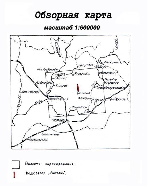 Учитывая сложные геолого-гидрогеологические условия участка работ, в ФГУП «Воронежгеология» прогнозная оценка эксплуатационных запасов месторождения “Ростань” была подсчитана методами математического моделирования. При разработке математической модели в разрезе выделялось четыре основных водоносных горизонта, причем с целью реализации ламкинского водоупора, в составе первого комплекса было выделено три слоя. Таким образом, в вертикальном разрезе моделируемой территории выделено 6 слоев.