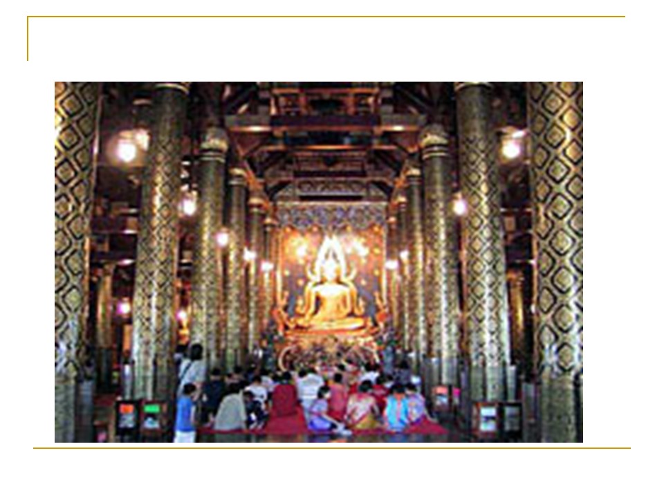 Буддисты посещают храмы в праздничные дни или особенно значимые: священные дни, свадьбы, похороны. Они участвуют в церемонии зажжения огней. Процессия движется против часовой стрелки вокруг храма. Они держат в руках цветок лотоса, свечу и благовония. Обувь при входе в храм принято снимать. Голова молящихся должна быть ниже головы Будды и священнослужителя, поэтому в храмах все рассаживаются на полу.