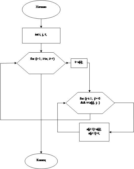 2.9 Разработка и программирование алгоритма сортировки методом простых вставок
