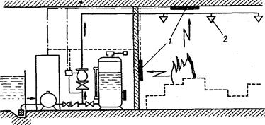 1 - извещатель; 2 - ороситель