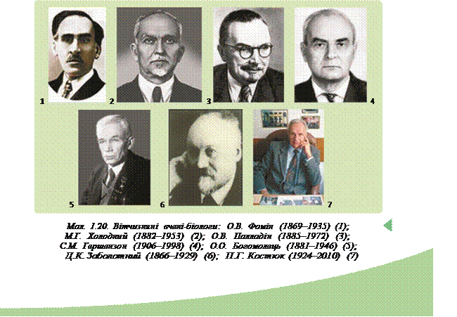 Мал. 1.1. Коротка характеристика основних біологічних наук