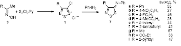 84. Lee H., Kim K. /A new procedure to N-arylcyanothioformamidines from 5-arylimimino-4-chloro-5H-1,2,3-dithiazoles/ Bull. Korean Chem. Soc., 1992, 13, 107-108.