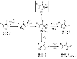 2.2.3 Предполагаемый механизм взаимодействия 4-замещенных 5Н-1,2,3-дитиазолов 4 и 6 с первичными и вторичными аминами