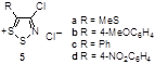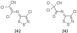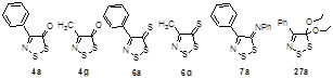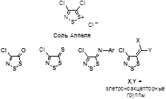 Известны и широко изучены 1,2,3-дитиазолы, содержащие в четвертом положении атом хлора. На основе хлорида 4,5-дихлор-5H-1,2,3-дитиазолия – соли Аппеля, получен и подробно изучен широкий ряд функциональных производных - кетон, тион, иминов и илиденов, показанных ниже.