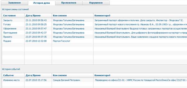 При поступлении заявления в территориальный орган уполномоченный сотрудник проверяет заявление на наличие в нем грамматических и технических ошибок и в течение 1 рабочего дня осуществляет проверку заявителя по учётам ФМС России и территориального органа на предмет выявления оснований для отказа в приёме заявления к рассмотрению. Если ошибок не обнаружено делу присваивается состояние «ПРИНЯТО».