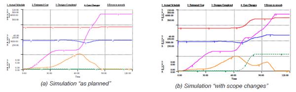 Пожалуй, самый новый метод моделирования проекта, позволяющий наиболее комплексно описать проект и с помощью имитационного моделирования процессов, протекающих в проекте, определить источники риска и даже количественно описать их. Пример описания проекта по разработке ПО с использованием системной динамики, ориентированный на моделирование изменения требований к разрабатываемому ПО: