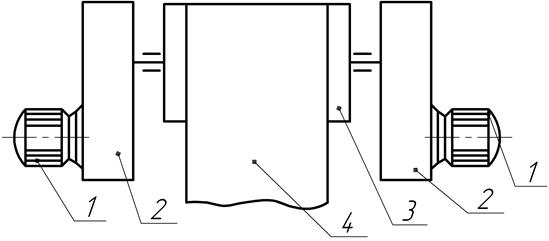 Привод (рисунок 5.2, а)содержит два двигателя 1, два редуктора 2, барабан 3 (один из трех) и ленту 4. Двигатель 1 прифланцован к редуктору 2. Тихоходный вал редуктора выполнен полым с шлицевым соединением вала барабана.
