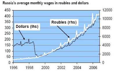 Динамика средней зарплаты по России в долларах и в рублях в 1996—2006 годахВ июне 2010 года среднемесячная начисленная заработная плата составляла 21597 руб. По данным на март 2010 года, средняя начисленная заработная плата в России составляла 20383 руб/мес, в том числе в: