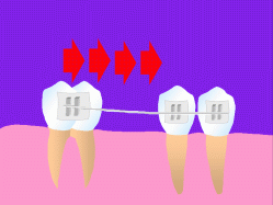 А вот четвертый метод - это просто чудо ортодонтической мысли. Если вслед за удаленным зубом есть еще зуб, то фокусник-ортодонт с помощью хитрой тяги может перетащить последний зуб на место удаленного.