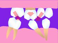 Под действием травматического смыкания зубов развивается воспаление в тканях пародонта, приводящее к подвижности зубов, оседанию десны, обнажению корней зубов, гноетечению из пародонталъных карманов, дурному запаху изо рта, периодическому возникновению абсцессов на десне.