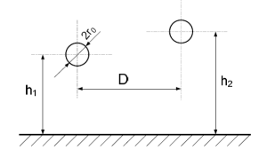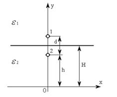 . Нижний провод находится на расстоянии H от земли. Верхний на d выше нижнего. Граница сред проходит на равном расстоянии от проводов.
