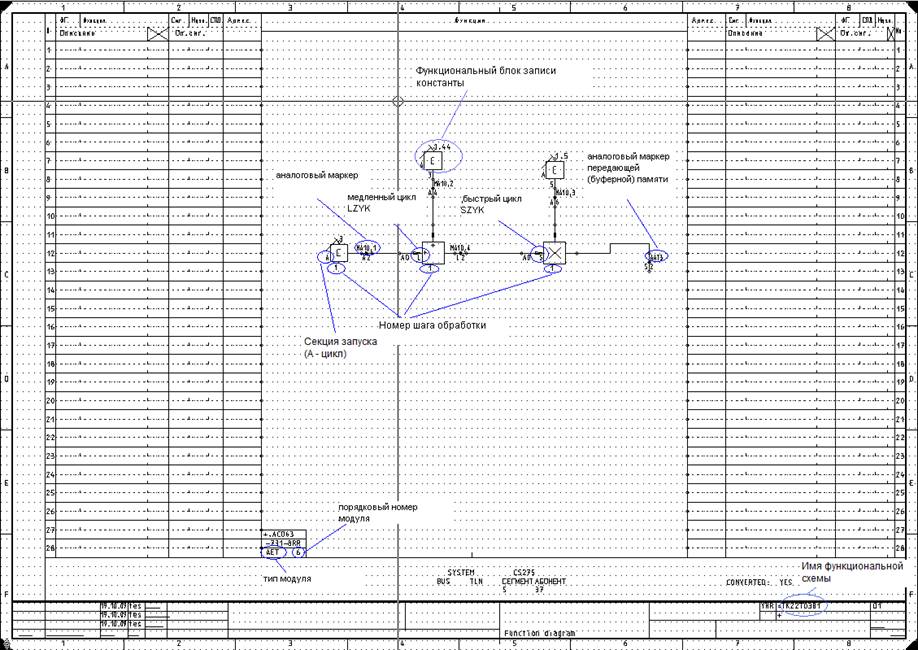 После каждого функционального блока необходимо поставить графическое отображение маркера. Выбирается из меню функциональных блоков обозначение ZUW.