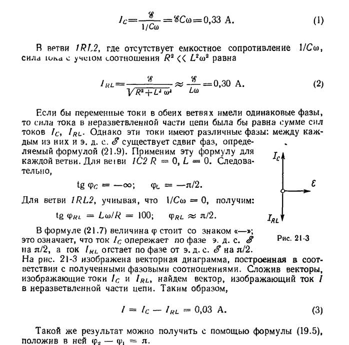ным соединением двух ветвей, одна из которых содержит конденсатор С, а другая - элементы R, L, соединенные последовательно между собой. Каждая из ветвей вместе с источником ЭДС образует колебательный (неполный) контур Поэтому силу тока в каждой ветви снова найдем по формуле