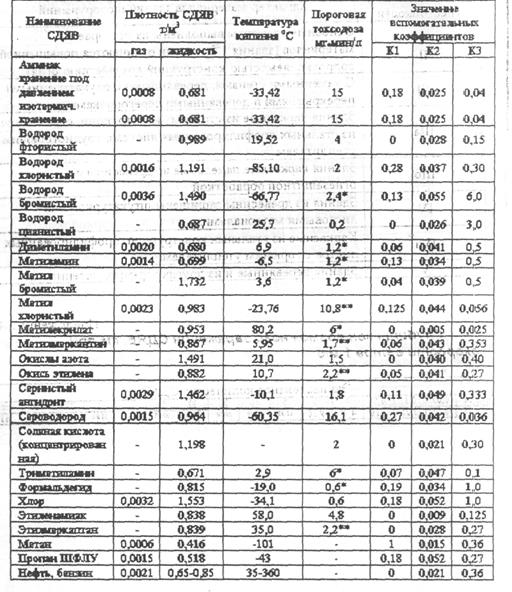 Таблица 1.1. Токсичные и пожароопасные свойства применяемых веществ