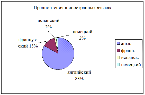 Более 80% опрошенных ответили, что английский, так как он интернациональный язык; 13%-французский, 2%-испанский и 2%-немецкий.