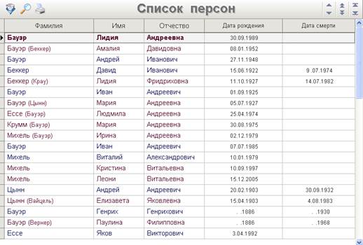 После заполнения «карточки персоны» этот член семьи появляется в общем списке персон семейной летописи.