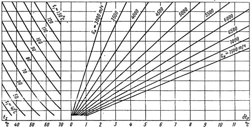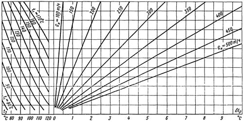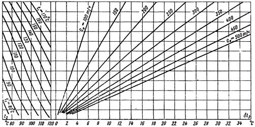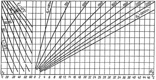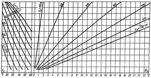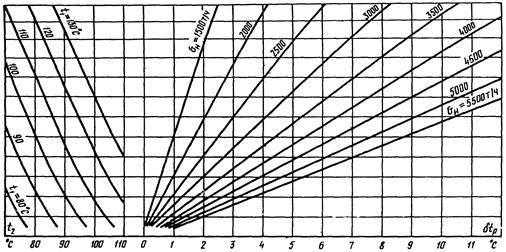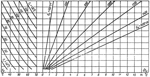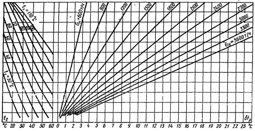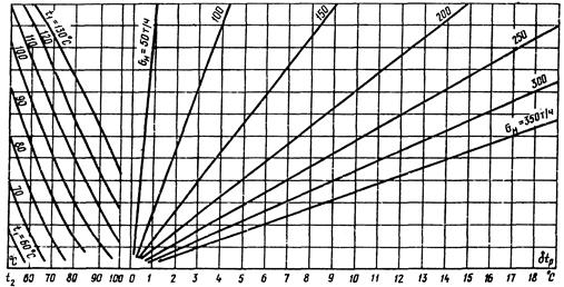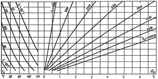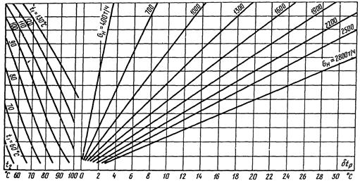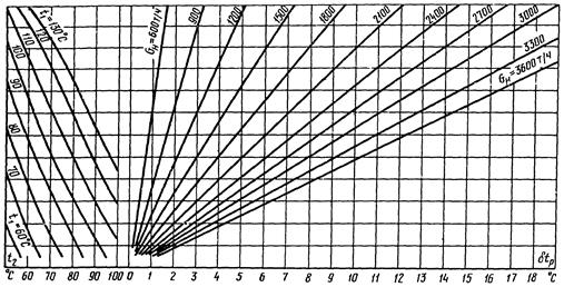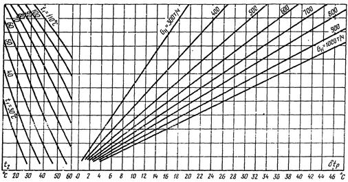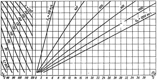 1.4. Расчетный температурный напор при чистой поверхности нагрева определяется по соответствующему графику (приложение 2) для режима работы, при котором проводились эксплуатационные измерения параметров.