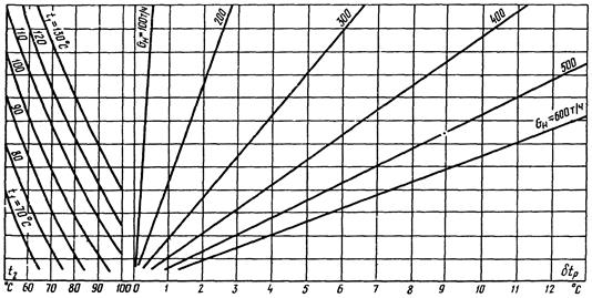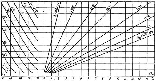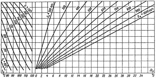 находим расчетный температурный напор, который для условий измерений составит dtp