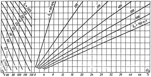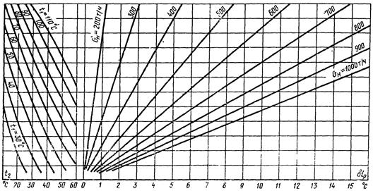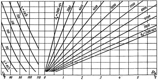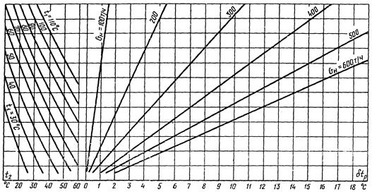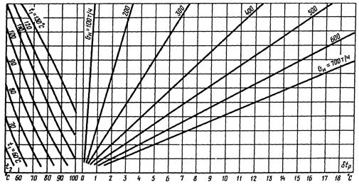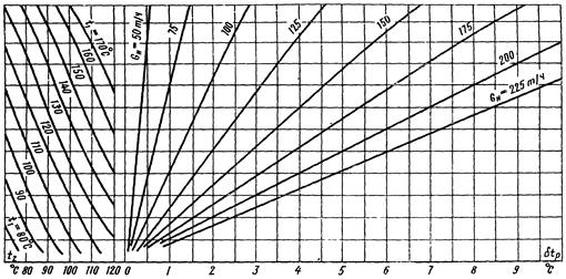 (по графику приложения 2 для данного типа подогревателя) для условий, соответствующих режиму при проведении измерений, т.е. при ; и G