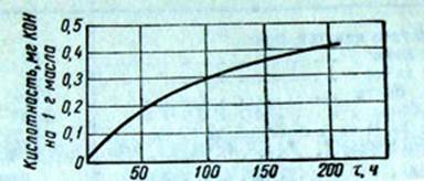 Кислотное число является критерием оценки содержания кислых соединений в жидкости. Его определяют титрованием. Единицей измерения является мг КОН, эквивалентный одному грамму испытуемой жидкости. Это маленькая единица измерения. Представим себе, что 0,5% воды, что довольно часто встречается в гидравлических системах самолетов, после полного гидролиза дает эквивалентное кислотное число 15,6 мг КОН, что показано следующим уравнением: