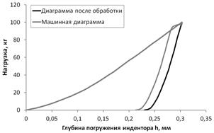 Первичные диаграммы индентирования шва стали ХНС-2 представлены на рисунке 5. Из диаграмм, построенных в координатах «Нагрузка (P